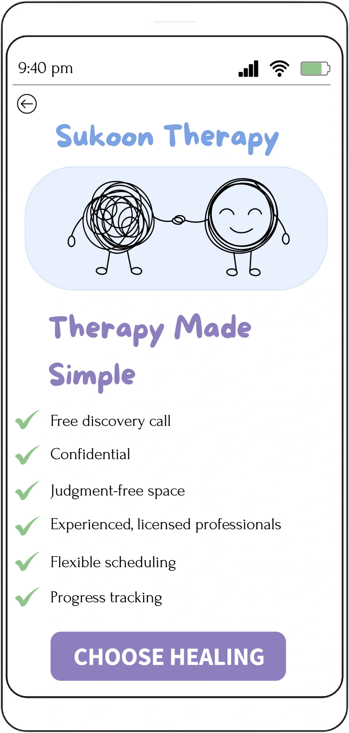 You’ve made it here and that’s something to be proud of. At Sukoon, we meet you with warmth, no judgment, and space to just be. Whether you feel lost, curious, or overwhelmed, this is your gentle beginning.